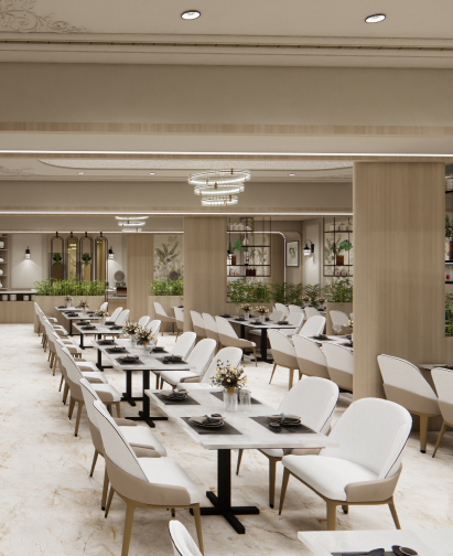 With a seating capacity of up to 100 guests, the restaurant comfortably accommodates wedding guests, group tours, and families while maintaining a calm and refined dining atmosphere.